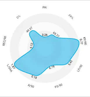 At first glance, this does not appear to paint De Paul in a glowing light, only beating Hernández in the duels won and recoveries per 90 categories on the diagram, but circumstantial knowledge is required to accurately interpret this data.