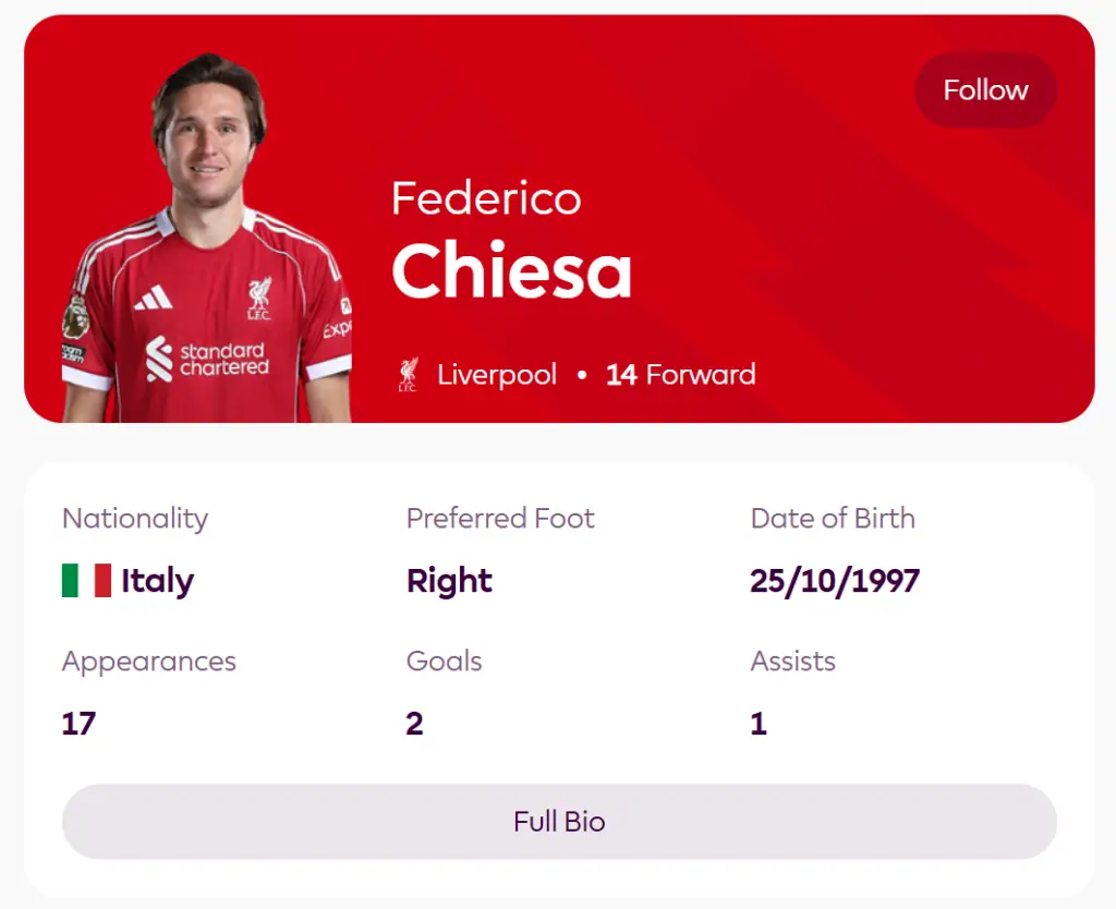 Liverpool signed Chiesa from Juventus in August of 2024 in a deal reportedly worth ยฃ10 million plus ยฃ2.5 million in add-ons. While it was understood that he was brought in for depth, as perhaps a shadow of the Euro infamy that often preludes his career, Chiesa was still known for the odd piece of flair and magic. Alas, he has still struggled within these permutations.